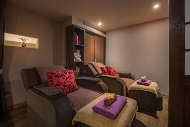 - Head, neck and shoulder massage: là liệu pháp xoa bóp, ấn huyệt đầu và giữa 2 bả vai làm xoa dịu các cơ và mô cơ xung quanh đầu, cổ, vai, gáy để giảm đau và giảm căng thẳng